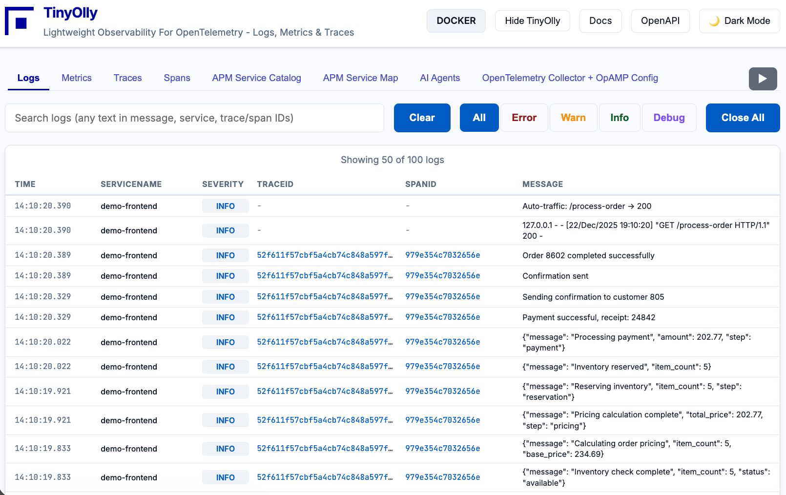 ![]() Trace Waterfall with Correlated Logs |